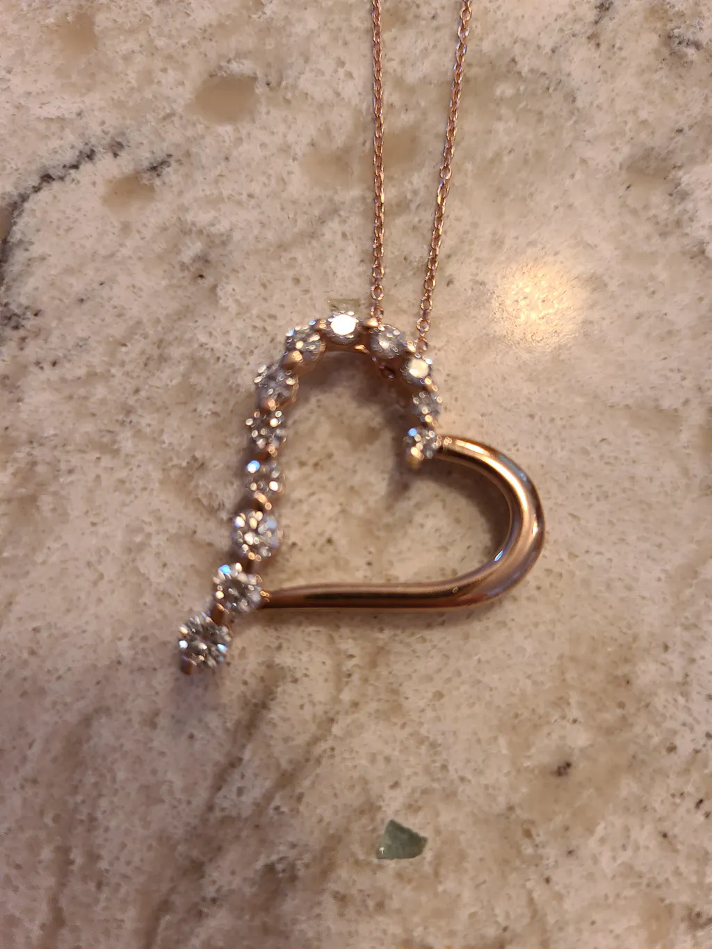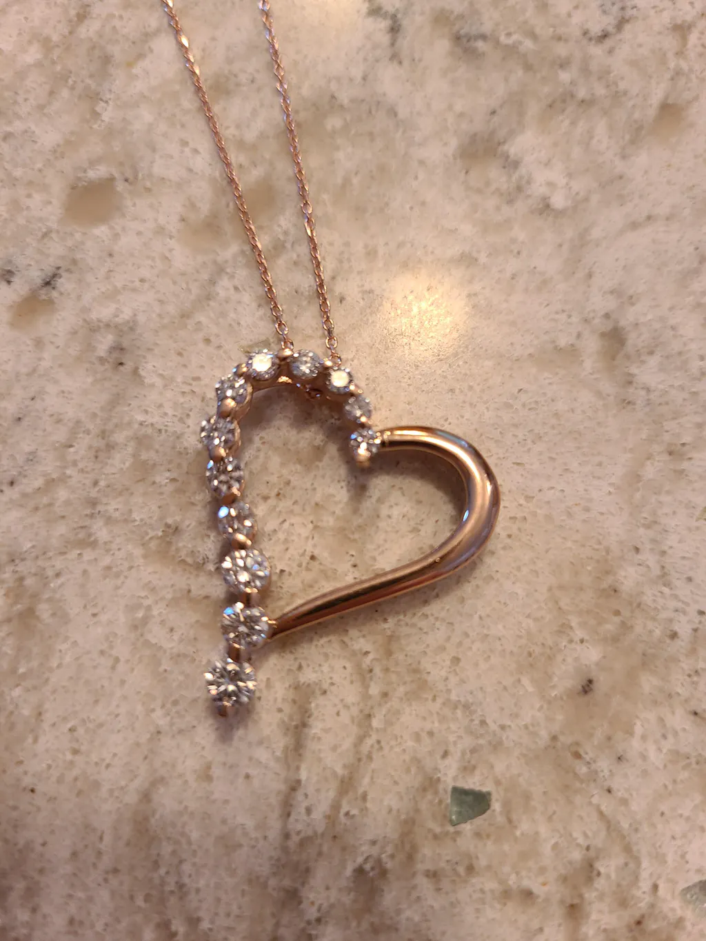 I'm so glad I took a chance with this new company. I was a bit hesitant to purchase this rose gold 1ct diamond journey neclace. It arrived in a timely manner and I immediately tested the sparkling white diamonds to find they were indeed genuine diamonds and exactly the clarity advertised!!!! I am beyond thrilled with this necklace and the price I paid. You cannot get this necklace for this price in any jewelry chain store! I highly recommend Bella Vios and will definitely purchase again!!!